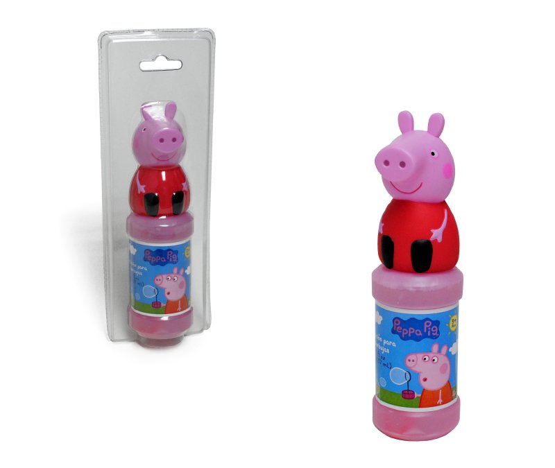 Burbujas, burbujas y más burbujas! Una manera entretenida de jugar en el patio, cumpleaños o paseos es con Burbujas y Peppa tiene este entretenido recipiente con formula para burbujas, su diseño es con una linda figura de Peppa!